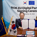 (조세금융신문=구재회 기자) 한국과 유럽연합(EU)이 디지털 파트너십을 맺고 반도체, 초고성능 컴퓨팅(HPC), 양자 기술, 사이버 보안 등 분야에서 협력을 강화하고 디지털 통상 이슈에 대한 논의를 진전시키기로 했다. 과학기술정보통신부는 28일 이종호 장관과 EU 티에리 브르통 내수시장 집행위원이 영상회의를 열어 '한-EU 디지털 파트너십'에 서명했다고 밝혔다. 양측은 디지털 기술의 개발과 활용이 민주적 가치, 인권 존중, 사회문제 해결, 삶의 질 향상 원칙 등에 기초해 이루어져야 한다는 데 인식을 같이하고, 파트너십을 통해 인프라와 인적 역량 향상, 기업과 공공 서비스의 디지털 전환, 디지털 통상 등 관련 사안에 대한 포괄적인 협력을 증진하기로 했다. 양측은 우선 반도체, 초고성능 컴퓨팅(HPC) 및 양자 기술, 사이버 보안, 5G·6G, 인적 교류와 디지털 포용, 인공지능(AI), 디지털 플랫폼, 데이터 관련 법·체계, 디지털 신뢰, 디지털 통상 등 11대 협력 과제를 추진하는 데 힘을 모으기로 했다. 반도체 분야에서 최신 기술과 동향을 논의하는 '한-EU 연구자 포럼'을 과기정통부 주관으로 신설한다. 반도체 산업 협력과 관련, 조기 경보체계 구축 등을