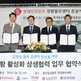 (조세금융신문=최주현 기자) 강원 강릉시는 2일 박윤기 롯데칠성음료 대표, 구현철 장금상선·흥아라인 대표, 이동진 트라이허브코리아 대표와 '강원권 물류 경쟁력 향상을 위한 옥계항 활성화 상생협력 업무협약'을 맺었다. 롯데칠성음료 강릉물류센터 개관에 맞춰 열린 이번 협약은 옥계항을 활용해 강원권 수출입 기업이 물류비를 절감할 수 있도록 적극 협력하고, 물동량 증대를 위한 옥계항 홍보 등 다방면으로 협조하는 것을 내용으로 담고 있다. 이날 개관한 강릉물류센터는 강원 영동권 통합센터 역할과 함께 옥계항과 연계한 일본 주류 수출을 위한 전초기지가 될 전망이다. 첫 단계로 기존 부산항을 이용했던 롯데칠성음료 강릉공장 일본 수출 물동량 일부를 옥계항으로 돌려 물류비 절감 효과를 실증한 후 문제점을 보완, 점진적으로 물동량을 늘려나가기로 합의했다. 시는 이번 협약을 발판으로 물류 경쟁력 강화 행보에 박차를 가할 예정이다. 김홍규 시장은 "이번 협약이 옥계항 활성화가 지역 기업의 물류비 절감에 미치는 효과를 보여주는 본보기가 될 것으로 기대한다"며 "시는 앞으로도 강원권 물류 경쟁력 향상을 위한 협력 네트워크를 지속해 확대해갈 계획"이라고 말했다. [조세금융신문(tfmed