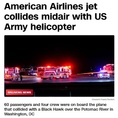 (조세금융신문=안종명 기자) 미국 수도 워싱턴의 공항 인근에서 여객기가 공중에서 미군 헬리콥터와 충돌한 뒤 추락했다고 CNN 등 미국 언론이 밝혔다. CNN 등 미 언론들은 29일(현지시간) 밤 아메리칸항공 산하 PSA가 운영하는 여객기가 미군 블랙호크 헬리콥터와 공중에서 부딪힌 뒤에 워싱턴의 로널드 레이건 공항 인근 포토맥강에 추락했다고 보도했다. 사고 여객기에는 승객 60명과 승무원 4명이 탑승해 있었다고 아메리칸항공 측이 밝혔다고 CNN은 전했다. 여객기와 충돌한 블랙호크 헬기에는 군인 3명이 탑승한 상태였다고 미 국방 당국자는 말했다. 워싱턴 소방 및 경찰 당국은 현재 사고 현장 주변에서 수색 작업을 벌이고 있다. 당국은 현재까지 확인된 인명 피해는 없다고 밝혔다. 사고로 인해 현재 로널드레이건 공항의 모든 이착륙은 중단된 상태다. 추락한 여객기는 캔자스주 위치타에서 워싱턴으로 향하던 아메리칸항공(AA) 5342편으로 알려졌다. 한편 도널드 트럼프 대통령은 이날 성명을 통해 “나는 레이건 공항에서 방금 일어난 끔찍한 사고에 대해 충분히 보고를 받았다”면서 “신이 그들의 영혼을 축복하기를 기원한다”고 밝혔다. 그는 이어 “최초 (사고) 대응 인력들이 하