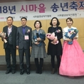 (조세금융신문=구재회 기자) 지난 1일 문학전문 사이트이자 문학나눔 채널인 시마을은 대방동 여성플라자에서 시마을동인 및 낭송작가협회, 영상작가협회, 작가시회와 공동으로 2018년 송년문학축제를 개최했다. 시마을 동인과 시인, 영상 및 낭송작가, 사진작가 등 100여 명이 참석한 행사는 송성인 영상작가의 개막영상(시 장승제), 시마을 문학상 시상, 문학발전에 공로가 큰 시마을 회원 등에 대한 공로패 수여, 초대 가수 최의성의 공연 순으로 진행됐다. 이번 행사는 전국 각지에서 시인, 시낭송작가, 영상 및 사진작가 등이 모여 시와 영상, 낭송이 결합된 새로운 퓨전문학을 제시했다는 평가를 받았다. 특히 밥퍼봉사 등 문학나눔활동을 활발히 펼쳐온 시마을사랑나눔봉사회(박미숙, 김재미, 박명숙 등)가 공로패를 받았으며, 그동안 습작활동을 해온 이규환 시인이 시마을문학상 대상을 수상했다. 지난 2001년 개설된 시마을은 정회원이 20만 명이 이르고 누적방문자가 1억명을 돌파하는 등 국내 최대규모의 문학단체로서 문학의 대중화와 저변확대를 위한 산파 역할을 담당하고 있다.