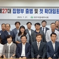 (조세금융신문=김영기 기자) 대구지방세무사회(회장 이재만)가 2023년 새로운 집행부를 구성하고 본격적인 회무에 돌입했다. 대구지방회는 지난달 27일 ‘제27대 집행부 선임증 및 임명장 수여식’을 갖고 첫 확대 임원회의를 개최했다. 회의에 앞서 새롭게 구성된 상임이사, 이사, 업무정화조사위원장, 각 지역세무사회 회장, 각 위원회 위원장에 대한 선임증 및 임명장을 수여했다. 이재만 회장은 앞으로 2년간 회 발전과 회원들 간의 화합을 위해서 임원들의 적극적인 회무 참여와 산재한 현안업무 해결을 위한 협조를 당부했다. 확대임원회의에서 이 회장은 당선축하 성금 600만원 기탁 등 회무보고, 심의 및 협의 사항 순서로 진행했다. 이와함께 지역세무사회 간사 및 각 위원회 합동회의를 개최하고 새롭게 구성된 지역세무사회 간사, 각 위원회 위원에 대한 임명장 수여 등 합동회의를 개최했다. 임명장 수여식에 이어 합동회의에서는 각 위원회별 소관 업무에 대한 설명과 각 위원회 운영방향과 발전방안에 대한 협의가 이뤄졌다. [조세금융신문(tfmedia.co.kr), 무단전재 및 재배포 금지]