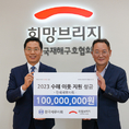 (조세금융신문=이지한 기자) 한국세무사회(회장 구재이)가 지난 7월 집중호우로 수해를 입은 수재민 돕기에 나섰다. 한국세무사회는 8일 마포구에 위치한 ‘희망브리지 전국재해구호협회'(회장 송필호, 이하 ‘희망브리지’)를 방문해 지난 7월 전국적으로 내린 집중호우로 피해를 입은 수재민을 돕기 위해 회원들이 십시일반으로 모금한 성금 1억원을 기탁했다. 한국세무사회 구재이 회장은 지난 7월 초부터 전국 각지에서 발생한 집중호우로 인해 희망브리지가 ‘2023 수해 이웃돕기 긴급모금 캠페인’을 실시한다는 소식을 접하고 전회원을 대상으로 7월 21일부터 31일까지 11일간 ‘수재민 돕기 성금 모금’을 진행했다. 이날 세무사회원들이 십시일반으로 낸 성금을 모아 1억원을 ‘희망브리지 전국재해구호협회’에 전달했다. ‘수해 이웃 지원 성금’ 전달식에는 한국세무사회 구재이 회장을 비롯해 서울지방세무사회 임채수 회장, 중부지방세무사회 이중건 회장, 인천지방세무사회 김명진 회장, 대구지방세무사회 이재만 회장, 광주지방세무사회 김성후 회장, 대전지방세무사회 고태수 회장, 정진세무사, 본회 김현준 사무처장이 참석하였고, ‘희망브리지’의 김희년 본부장, 배천직 본부장, 김미강 구호사업팀장