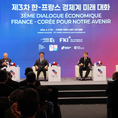 (조세금융신문=정지은 기자) 에마뉘엘 마크롱 프랑스 대통령은 3일 바이오, 탈탄소, 딥테크 등 미래 산업에서 프랑스의 경쟁력을 강조하며 프랑스에 투자해줄 것을 요청했다. 또 한불수교 후 140년간 쌓아온 신뢰 관계를 언급하며 두 국가 공통의 관심 분야에서 협력을 강화하자고 제안했다. 한국경제인협회는 3일 여의도 FKI타워에서 프랑스경제인협회(MEDEF)와 공동으로 '제3차 한-프랑스 경제계 미래대화(Korea-France Business Dialogue for our Future)'를 열었다. 마크롱의 국빈 방한을 계기로 열린 행사에는 김민석 국무총리를 비롯해 양국 기업인·정부 인사 총 300여명이 참석했다. 마크롱은 현 정부 출범 후 국빈 방한한 첫 유럽 정상으로, 2017년 취임 후 처음이자 프랑스 대통령으로서는 11년 만의 방한이다. 행사에는 클라라 샤파즈 AI·디지털 특임장관, 롤랑 레스퀴르 경제·재정부 장관 등을 포함한 방한 경제사절단 70여명과 프랑스 대표기업 최고경영자(CEO) 200여명이 참석했다. 한국 측에서는 김민석 국무총리와 류진 한경협 회장, 이재용 삼성전자 회장, 정의선 현대차그룹 회장, 최수연 네이버 대표 등 정·재계 인사들이 두루