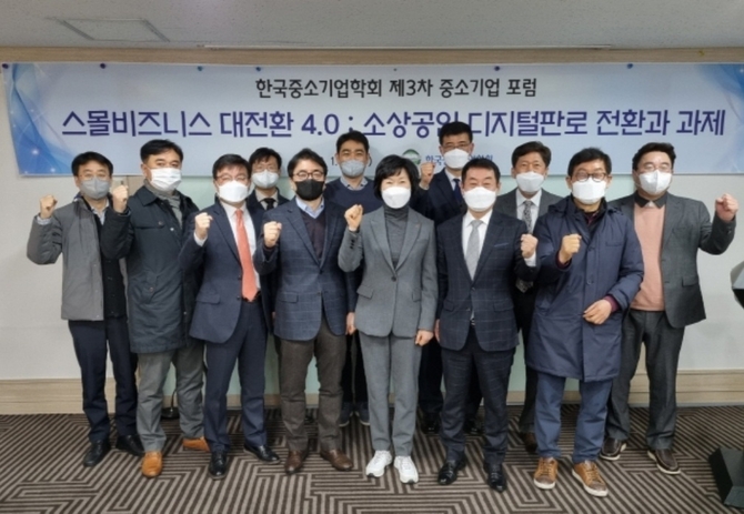 한국중소기업학회(학회장 한양대 이병희 교수)는 지난 20일 서울 여의도 중소기업중앙회 회의실에서 ‘스몰비즈니스 대전환 4.0 : 소상공인 디지털 판로 전환과 과제’ 주제로 3차포럼을 개최했다고 22일 밝혔다. 이번 포럼은 소상공인연합회(회장 오세희) 후원으로 진행됐다.