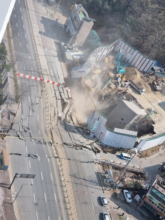 이날 광명시는 신안산선 복선절철 지하 공사장 구조물 파손으로 인한 붕괴우려에 따라 긴급하게 도로를 통제했다.
