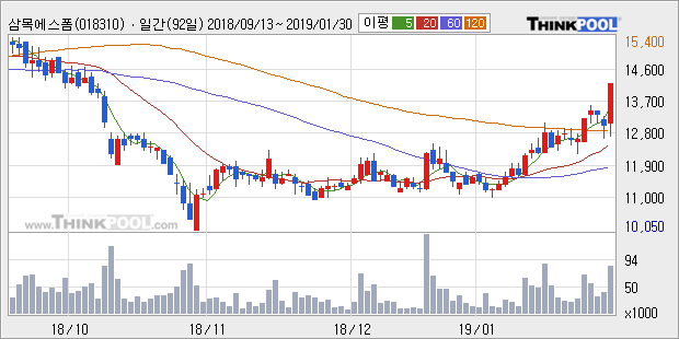 [그래프]삼목에스폼 일봉 차트