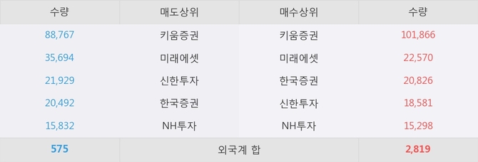거래원 동향은 미래에셋, NH투자 등이 매수 상위 목록에 나타나고 있다.