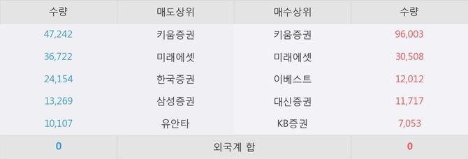이 시각 주요 거래원은 미래에셋, 키움증권, 이베스트 등이 매수 상위 창구에 자리하고 있다.