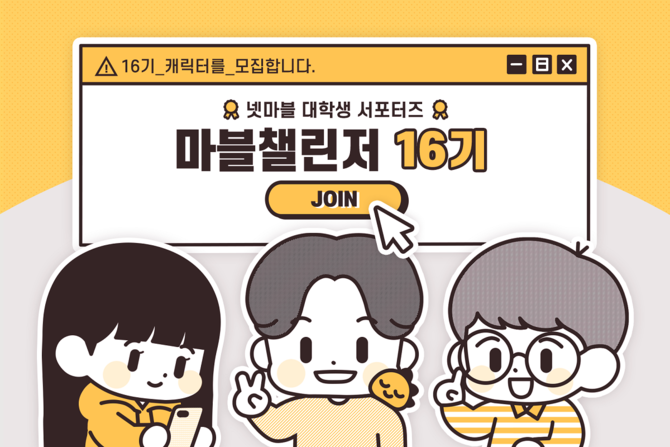 (조세금융신문=이정욱 기자) 넷마블이 대학생 서포터즈 ‘마블챌린저’ 16기를 모집한다고 19일 밝혔다.