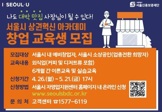 (조세금융신문=구재회 기자) 서울시는 식당 등 창업을 준비하는 이들을 지원하는 '상권혁신아카데미'를 7월부터 운영한다.