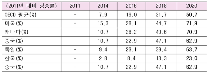 글로벌 주택가격 누적상승률(2011년~2020년) 추이
