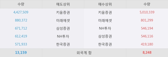 거래원 동향은 미래에셋, NH투자, 삼성증권 등이 매수 상위 목록에 나타나고 있다.