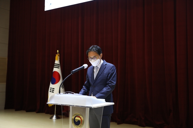 5일 오후 2시부터 대전국세청 1층 대강당에서 제57대 강민수 신임 대전지방국세청장 취임식이 치러졌다. 강 청장은 기념사를 통해 "경제가 회복세를 보이지만, 코로나19 등 대내·외 불확실성으로 세정환경은 여전히 녹록지 않다"며 "국민경제 회복을 위한 국가재정 역할이 더욱 중요해지는 상황에서 세입예산의 안정적 조달이라는 본연의 임무와 더불어 어려운 납세자에 대한 지원에 만전을 기해달라"고 당부했다.