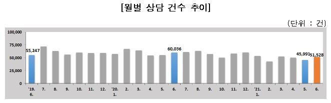 작년 6월과 비교한 상담 증가율은 신유형상품권(34%), 모바일정보이용서비스(29.3%), 각종 인테리어 설비(17.7%) 등의 순으로 높았다.