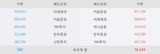 거래원 동향은 미래에셋, 하나금융, NH투자 등이 매수 상위 목록에 나타나고 있다.