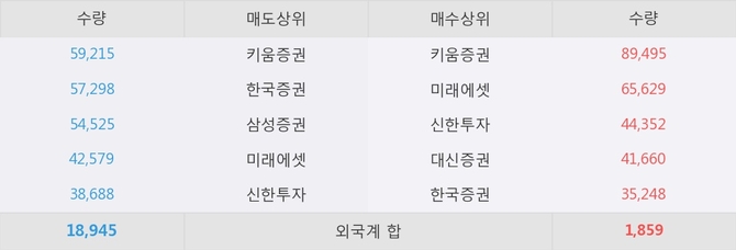 이 시각 주요 거래원은 미래에셋, 키움증권, 신한투자 등이 매수 상위 창구에 자리하고 있다.