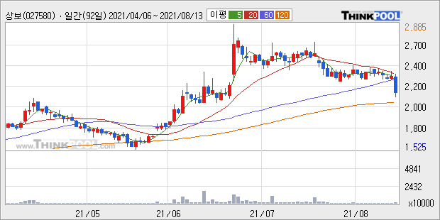 상보의 2020년 매출액은 전년대비 166.3% 늘어난 1301억원이고, 영업이익은 흑자전환해서 68억원을 기록했다. 이 회사의 매출액 증감률과 영업이익 증감률은 각각 코스닥 상위 3%, 상위 9%에 해당된다.