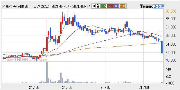 샘표식품의 2020년 매출액은 전년대비 13.6% 늘어난 3190억원이고, 영업이익 또한 전년대비 38.0% 늘어난 428억원을 기록했다. 이 회사의 매출액 증감률과 영업이익 증감률은 각각 코스피 상위 14%, 상위 30%에 해당된다.