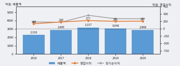 퍼시스의 2020년 매출액은 전년대비 -5.9% 줄어든 2868억원이고, 영업이익은 전년대비 2.4% 늘어난 257억원을 기록했다. 이 회사의 매출액 증감률과 영업이익 증감률은 각각 코스피 하위 41%, 하위 49%에 해당된다.