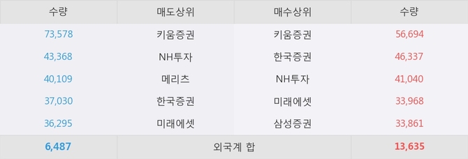거래원 동향은 NH투자, 미래에셋, 삼성증권 등이 매수 상위 목록에 나타나고 있다.