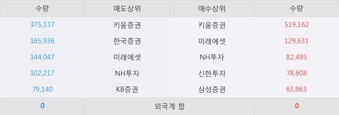 거래원 동향은 미래에셋, NH투자, 삼성증권 등이 매수 상위 목록에 나타나고 있다.