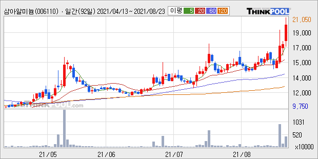 삼아알미늄의 2020년 매출액은 전년대비 3.1% 늘어난 1970억원이고, 영업이익 또한 전년대비 14.6% 늘어난 74억원을 기록했다. 이 회사의 매출액 증감률과 영업이익 증감률은 각각 코스피 상위 34%, 상위 41%에 해당된다.