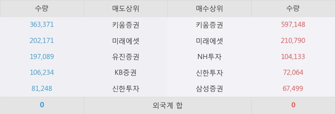 거래원 동향은 미래에셋, NH투자, 삼성증권 등이 매수 상위 목록에 나타나고 있다.