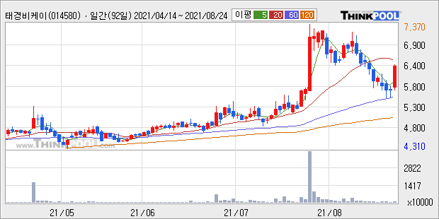 태경비케이의 2020년 매출액은 전년대비 -11.3% 줄어든 1654억원이고, 영업이익은 전년대비 179.1% 늘어난 108억원을 기록했다. 이 회사의 매출액 증감률과 영업이익 증감률은 각각 코스피 하위 29%, 상위 9%에 해당된다.