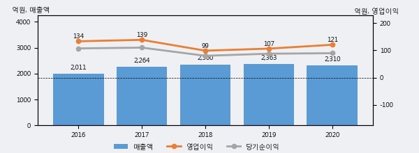 DSR의 2020년 매출액은 전년대비 -2.3% 줄어든 2310억원이고, 영업이익은 전년대비 13.3% 늘어난 121억원을 기록했다. 이 회사의 매출액 증감률과 영업이익 증감률은 각각 코스피 상위 49%, 상위 44%에 해당된다.