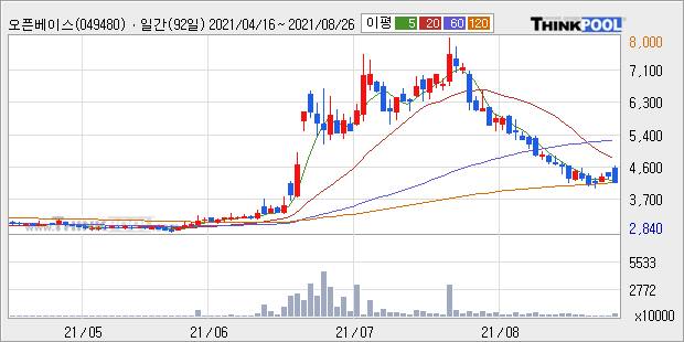 오픈베이스는 2020년 매출액 1556억원과 영업이익 37억원을 기록했다. 전년대비 매출은 -1.2% 하락했고, 영업이익은 57.8% 상승했다. 이 회사의 매출액 증감률과 영업이익 증감률은 각각 코스닥 하위 47%, 상위 25%에 해당된다.