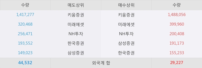거래원 동향은 미래에셋, NH투자, 삼성증권 등이 매수 상위 목록에 나타나고 있다.