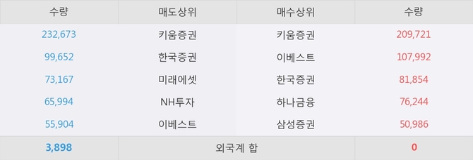 거래원 동향은 하나금융, 삼성증권 등이 매수 상위 목록에 나타나고 있다.