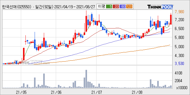 한국선재는 2020년 매출액 1872억원과 영업이익 52억원을 기록했다. 전년대비 매출은 0.9% 상승했고, 영업이익은 -21.7% 하락했다. 이 회사의 매출액 증감률과 영업이익 증감률은 각각 코스닥 상위 49%, 하위 40%에 해당된다.