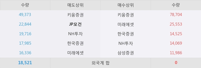 거래원 동향은 미래에셋, NH투자, 삼성증권 등이 매수 상위 목록에 나타나고 있다. 한편, 매도 창구 상위에는 JP모건이 눈에 띄고 있다.