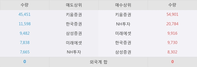 거래원 동향은 NH투자, 미래에셋, 삼성증권 등이 매수 상위 목록에 나타나고 있다.