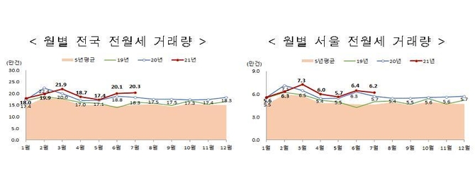 임대차 신고제 자료와 확정일자 신고 자료를 합산한 7월 전월세 거래량(신고일 기준)은 총 20만3천251건으로 집계됐다. 이는 전달(20만547건) 대비 1.3%, 작년 동월(18만3천266건) 대비 10.9% 각각 증가한 것이다.
