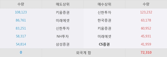 거래원 동향은 CS증권, 미래에셋이 매수 상위 목록에 나타나고 있다.