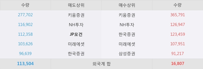 거래원 동향은 NH투자, 미래에셋, 삼성증권 등이 매수 상위 목록에 나타나고 있다. 한편, 매도 창구 상위에는 JP모건이 눈에 띄고 있다.