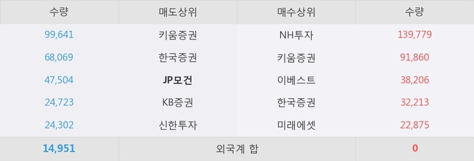 거래원 동향은 NH투자, 미래에셋 등이 매수 상위 목록에 나타나고 있다. 한편, 매도 창구 상위에는 JP모건이 눈에 띄고 있다.