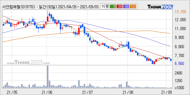 서연탑메탈의 2020년 매출액은 전년대비 -11.4% 줄어든 1414억원이고, 영업이익은 전년대비 1,783.3% 늘어난 68억원을 기록했다. 이 회사의 매출액 증감률과 영업이익 증감률은 각각 코스닥 하위 29%, 상위 2%에 해당된다.