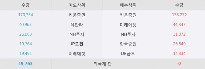 거래원 동향은 미래에셋, NH투자 등이 매수 상위 목록에 나타나고 있다. 한편, 매도 창구 상위에는 JP모건이 눈에 띄고 있다.