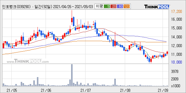 인포뱅크는 2020년 매출액 1196억원과 영업이익 6억원을 기록했다. 전년대비 매출은 0.1% 상승했고, 영업이익은 -25.3% 하락했다. 이 회사의 매출액 증감률과 영업이익 증감률은 각각 코스닥 하위 50%, 하위 39%에 해당된다.