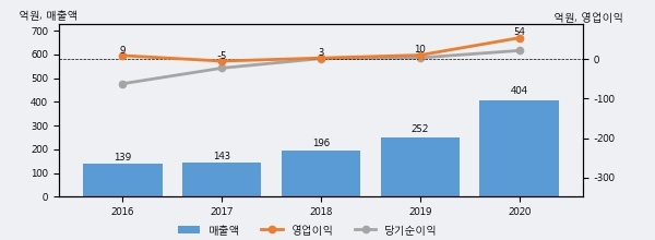 [그래프]키다리스튜디오 연간 실적 추이