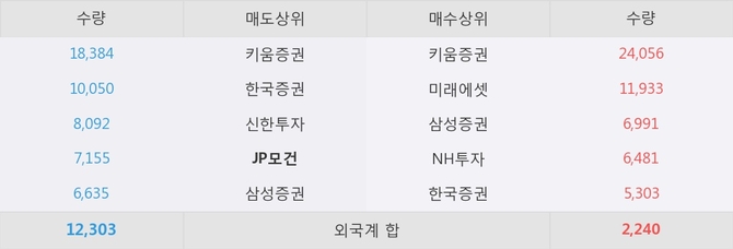 거래원 동향은 미래에셋, 삼성증권, NH투자 등이 매수 상위 목록에 나타나고 있다. 한편, 매도 창구 상위에는 JP모건이 눈에 띄고 있다.