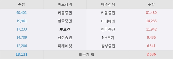 거래원 동향은 미래에셋, NH투자, 삼성증권 등이 매수 상위 목록에 나타나고 있다. 한편, 매도 창구 상위에는 JP모건이 눈에 띄고 있다.