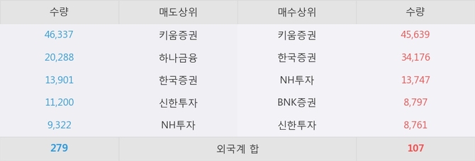 이 시각 주요 거래원은 NH투자, 키움증권, 한국증권 등이 매수 상위 창구에 자리하고 있다.