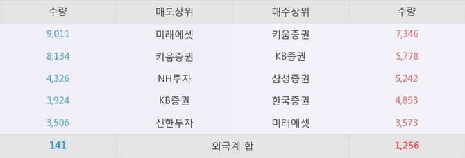 거래원 동향은 삼성증권, 미래에셋 등이 매수 상위 목록에 나타나고 있다.