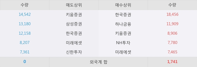 거래원 동향은 하나금융, NH투자, 미래에셋 등이 매수 상위 목록에 나타나고 있다.