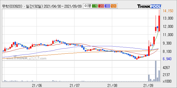 차트상 주가의 흐름은 단기간에 골든크로스를 만들고 주가가 60일선까지 뚫고 가는 모습이다. 최근 이 종목의 차트에서 최근 5일 매물대 돌파, 최근 60일 매물대 돌파 등의 특이사항이 발생했다.