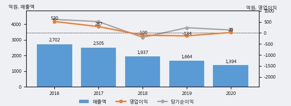 최근 3년간의 실적을 살펴보면, 매출액은 3년 연속 하락하고 있고 그 하락폭이 확대되고 있어서 투자자들은 주의깊게 살펴볼 필요가 있다.